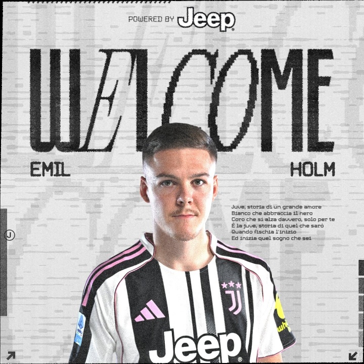 尤文官方宣布,从博洛尼亚免费租借引进霍尔姆,租借合同持续至本赛季末并包含选择买断权。